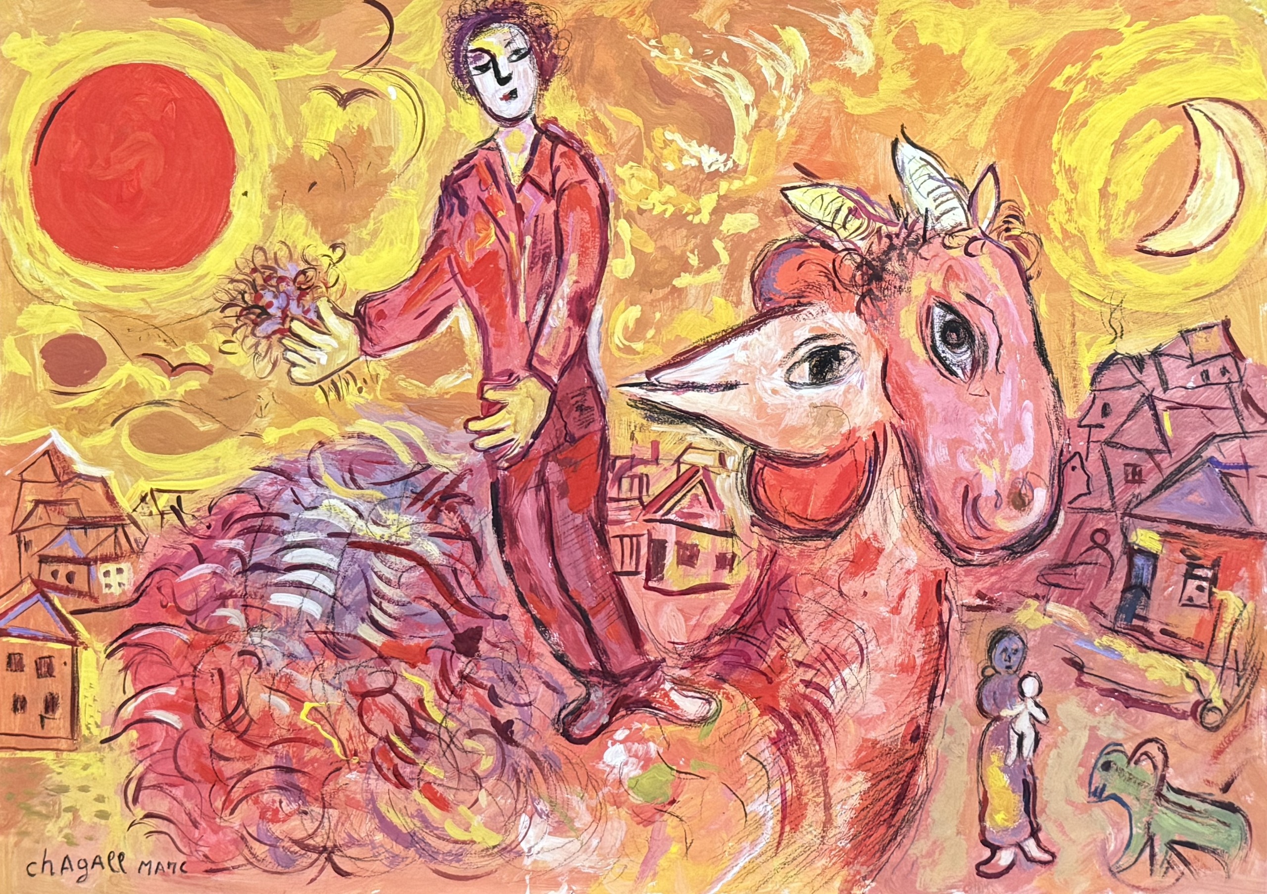 Marc Chagall (1887-1985) was a Russian-French painter and artist, famous for his use of vibrant colors and poetic symbolism in works that reflect love, dream and nostalgia.
